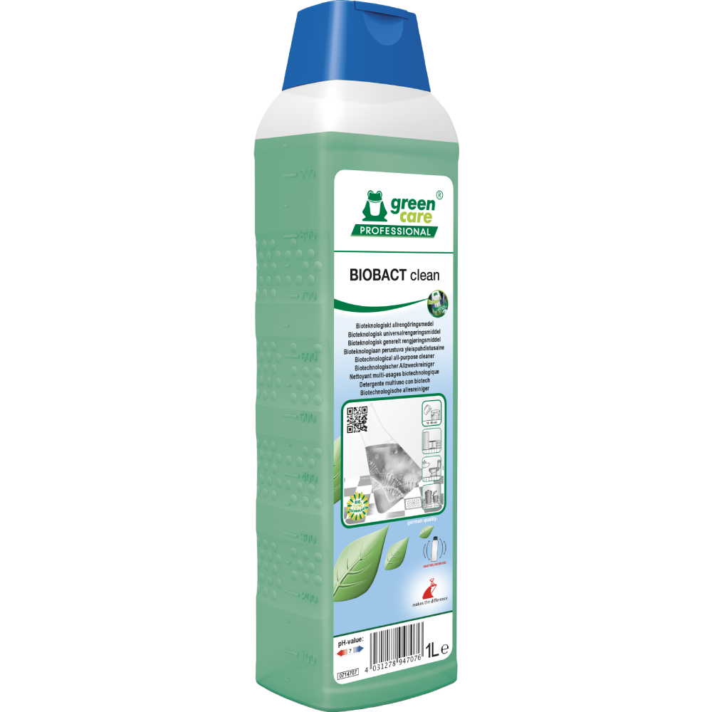 • BIOBACT clean is een pH-neutrale biotechnologische reiniger. BIOBACT clean reinigt en elimineert gelijktijdig onaangename geuren.