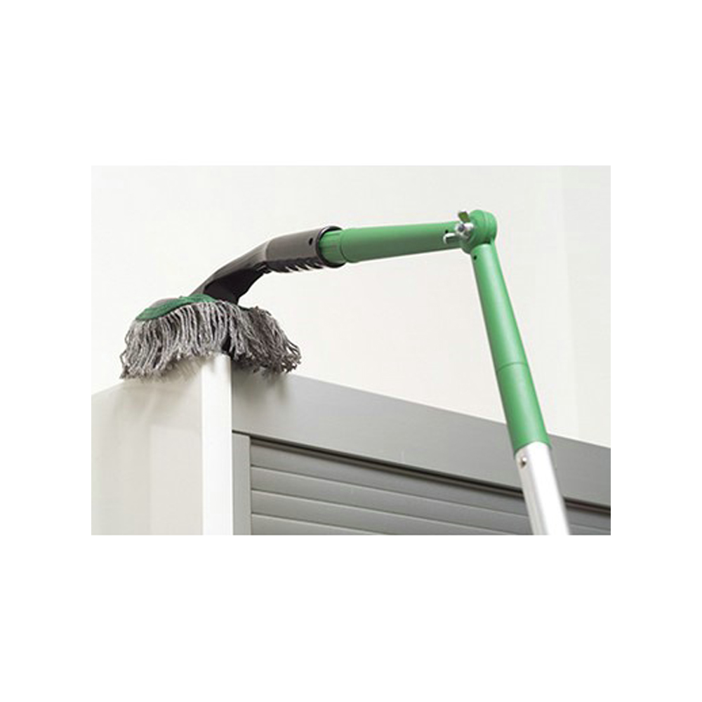 Kniegewricht voor telescopische steel De ontwikkeling van het kniegewricht is een vervolg op de verandering van het handvat van de MiniDuster. Door het lichtgewicht kniegewricht op een telescoopsteel te plaatsen is de mogelijkheid ontstaan om onder een hoek te kunnen werken. Zo kunnen met de dusters hoger en lager gelegen oppervlakken worden bereikt en stofvrij worden gemaakt. Het gebruik van een trap of andere klimmaterialen wordt hiermee zoveel mogelijk vermeden.