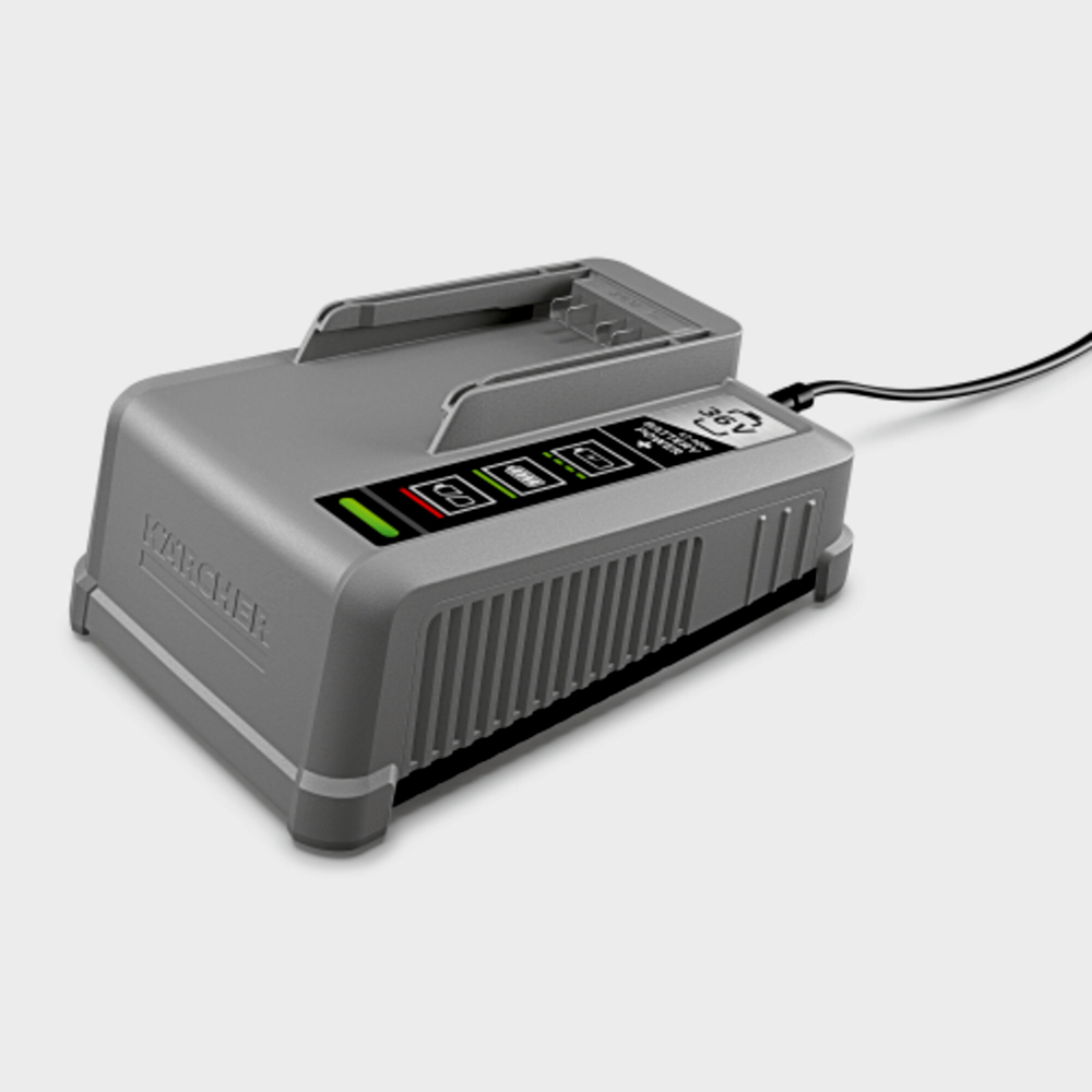 Innovatieve real-time technologie Compatibel met alle 36 V Kärcher Battery Power-accuplatformapparaten. Het geïntegreerde LCD-display toont te allen tijde de resterende looptijd, resterende oplaadtijd en het laadniveau.